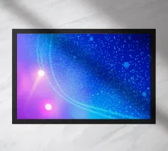 This captivating design features a blend of vibrant colors with fluid patterns, illuminated by colorful lights.