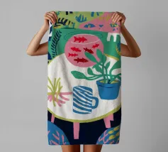 An abstract composition of colorful, pebble like shapes with various patterns and textures. The piece is a playful, vibrant, and imaginative design, reminiscent of a riverbed or a mosaic.