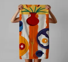 An abstract composition of colorful, pebble like shapes with various patterns and textures. The piece is a playful, vibrant, and imaginative design, reminiscent of a riverbed or a mosaic.