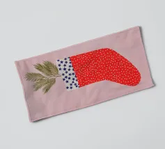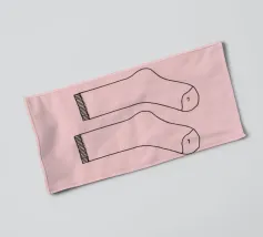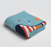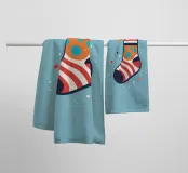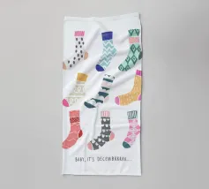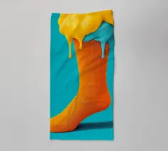 A vibrant sock illustration features bold stripes and colorful dots against a soft blue backdrop. The playful design showcases artful creativity and graphic elements, enhancing its appeal.