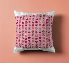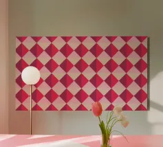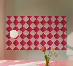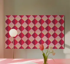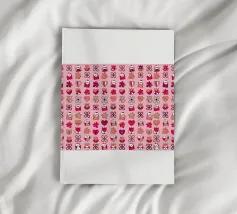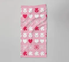 Cheerful Design. Playful concept with colored background. Symmetrical and repeating pattern. Backlit Filmprint, Cover stationery, Decorative Pillows, mugs, and blankets. Vibrant Colors Pink, Purple, and Beige. Celebrating an event, such as Valentine's Day. Also suitable for a circus Performance, theatre, and school.