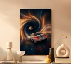 Take a thrilling ride through the cosmos with this bold and imaginative art print. A sleek modern car speeds through a swirling galaxy tunnel toward Saturn, creating a futuristic scene filled with energy, motion, and wonder. Bright cosmic colors, glowing stars, and dynamic movement make this design perfect for dreamers, sci-fi lovers, car enthusiasts, and anyone inspired by adventure. Ideal for bedrooms, game rooms, offices, or modern interiors, this artwork adds excitement, creativity, and a sense of limitless possibility.