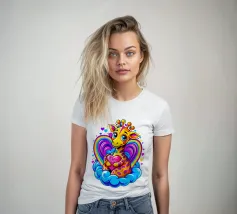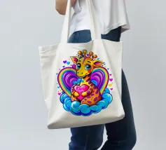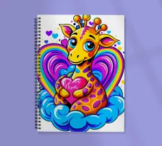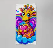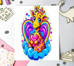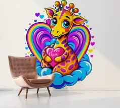 Bring home a touch of cuteness and warmth with this adorable design! Featuring a charming giraffe lovingly hugging a heart-shaped pillow on a fluffy cloud, all surrounded by vibrant rainbow hues. This playful and love-filled design is perfect for adding a cheerful vibe to any room, making it a delightful companion for cozy moments or as an eye-catching decorative piece. Perfect for: Adding a splash of fun to a child's room or as a unique gift for someone special.