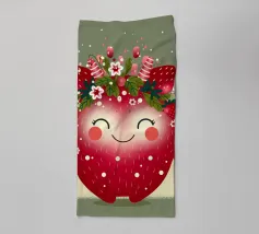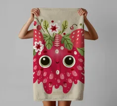 Cute monster as a raspberry in a cheerful kawaii look, with flowers, leaves and sweet details - perfect for children and all fans of playful illustrations.lovingly designed, cheerful monster.playful details such as flowers and leaves Perfect for children and comic fans Cute figure with a red fruit look Ideal for fans of playful motifs