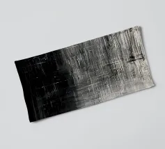 A deep black surface exhibits a slightly textured appearance with variations in shade and depth, creating a captivating backdrop ideal for design purposes, art projects, and photography.