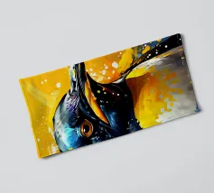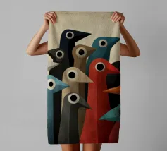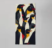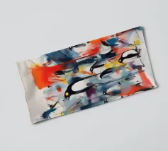 A graphic masterpiece of reduction: this stylised penguin colony combines rhythmic patterns, clear surfaces and elegant colour contrasts. Inspired by Japanese woodcuts and Scandinavian minimalism, the result is an interplay of proximity and repetition. The targeted colour accents in red and yellow lend the motif energy, structure and rhythm - an eye-catcher for anyone who appreciates design with character.