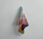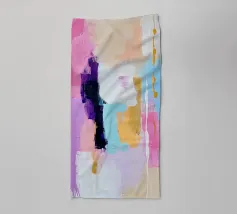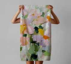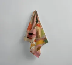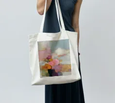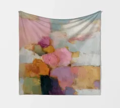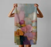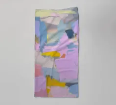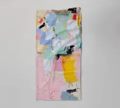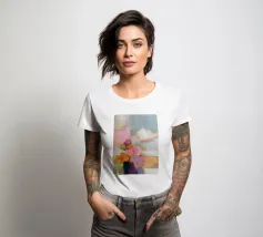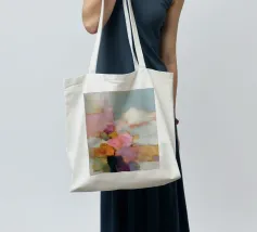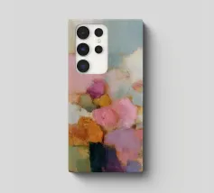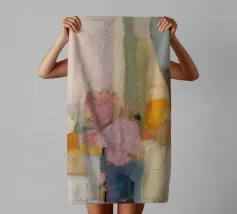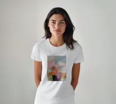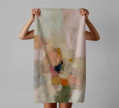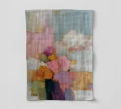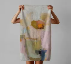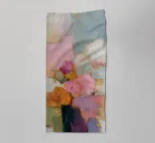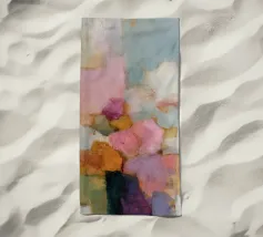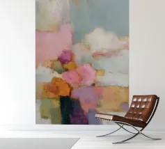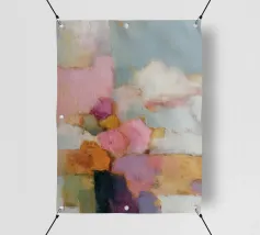 This abstract nature artwork combines soft pastel colours in pink, orange, light blue and green to create a harmonious composition of organic shapes and fine structures. Delicate brushstrokes and subtle textures create a calm, almost dreamy atmosphere. Ideal for modern rooms looking for a balance of naturalness, lightness and artistic expression.