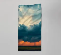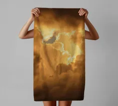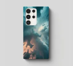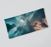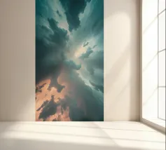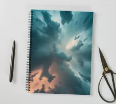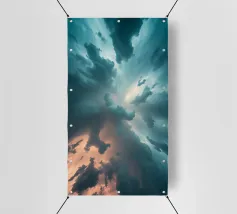 A captivating view of dynamic clouds swirling in the sky during a tranquil sunset. The colors blend beautifully, making it suitable for an eye-catching design