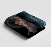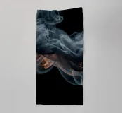 Soft tendrils of smoke in shades of blue and orange intertwine gracefully, creating a mesmerizing display against a black backdrop in low light.
