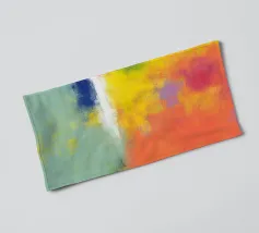 This abstract artwork depicts flowing areas of colour in pastel pink, yellow, blue, green and pink. The soft brushstrokes and harmonious pop art colour composition create a vibrant, lively atmosphere. The motif appears modern, light and emotional, inviting free interpretation.