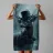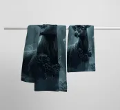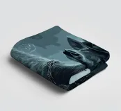 This atmospheric work of art shows a noble stag with imposing antlers standing in a misty forest. He is wearing a black top hat, decorated with a blue feather and flower, as well as a necklace of roses, which give him a mysterious, almost aristocratic air. The cool blue and grey tones of the surroundings create a calm, slightly mystical atmosphere that makes the animal appear both majestic and surreal. This motif is ideal for lovers of nature-loving dark art, surreal depictions of animals and elegant, atmospheric images.