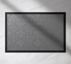 This setting showcases elegant wallpaper featuring a detailed floral and damask pattern in soft silver and grey tones, perfect for enhancing any room's decor.