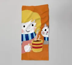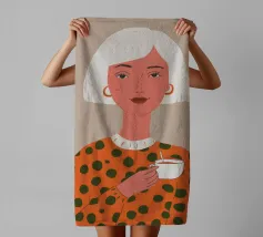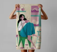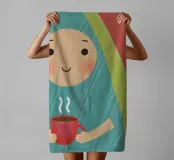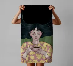 A calming illustration depicting a person with a gentle smile holding a warm cup of coffee.