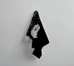 A person with short hair sits against a wall in a softly lit room, conveying deep emotion and introspection. The atmosphere feels heavy and contemplative, enhancing the mood.