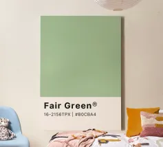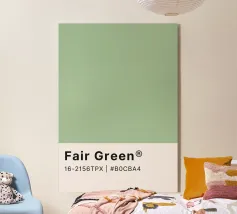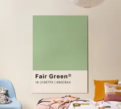 Enhance your interior with this clean and contemporary digital poster, featuring the "Fair Green" Pantone color. The upper section showcases a solid block of this soft, muted green hue, while the lower part clearly displays "Fair Green®" along with its Pantone code 16-2156TPX and hexadecimal value #B0CBA4. This print is perfect for adding a touch of natural tranquility and modern sophistication to any space, appealing to designers and color enthusiasts alike. This high-quality digital poster is provided at an impressive 7000x5000 pixels resolution and 300 dpi, ensuring exceptional clarity and