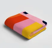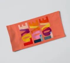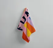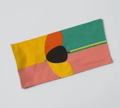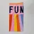 Minimal typographic artwork with bold color stripes and a simple word. Clean, playful composition.