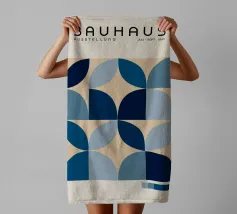 This design features a harmonious geometric pattern of overlapping semicircles in blue on a light-coloured background. The clear symmetry and timeless aesthetics make it a versatile statement for modern interior design. Perfect for posters, murals, cushions, mugs or shower curtains - ideal for anyone who loves minimalism, geometric art and Bauhaus-inspired patterns.