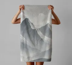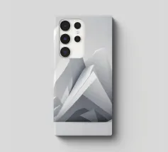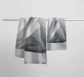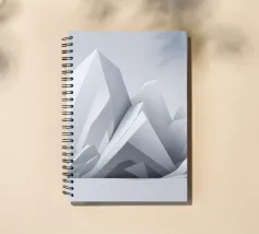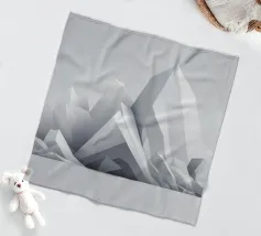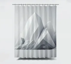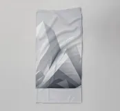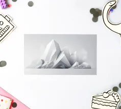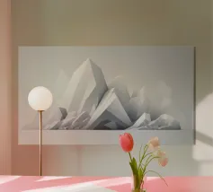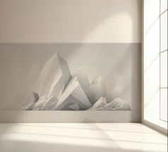 A striking landscape featuring sharp mountain peaks and smooth surfaces, showcasing a minimalist design. The geometric shapes create an abstract representation of nature's grandeur.