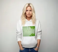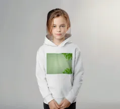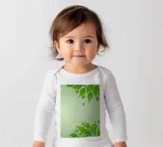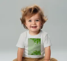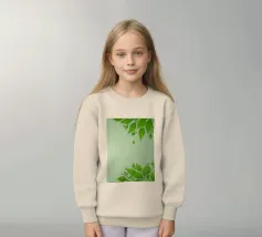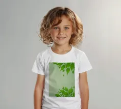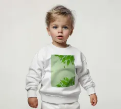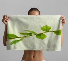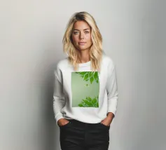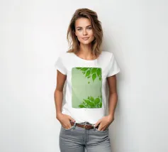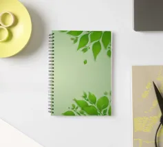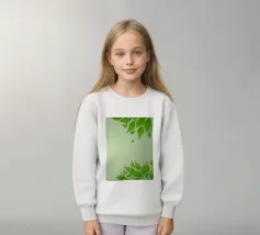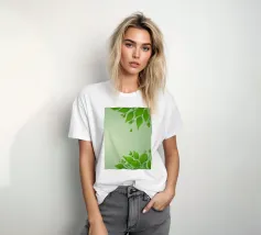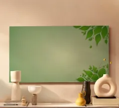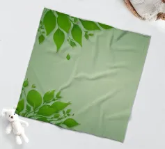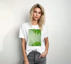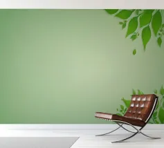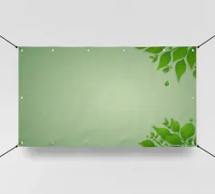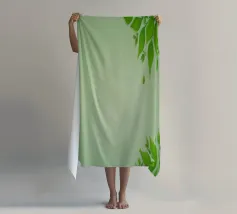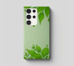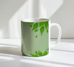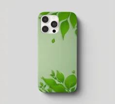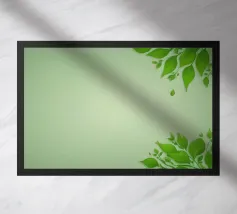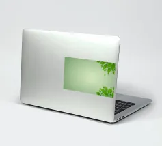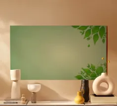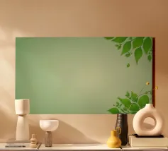 An abstract design features lush green leaves adorning the corners of a gentle background, providing a refreshing and tranquil atmosphere perfect for various digital uses.
