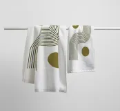 A minimalist exploration of flow and balance. This piece features a continuous, serpentine path of fine parallel lines bridging two solid ochre circles. Its clean composition and calming palette bring a sense of organized tranquility to modern, Japandi-inspired interior designs.