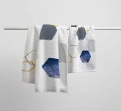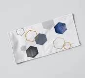 Hexagonal shapes of varying sizes feature different images, including a planet and a starry sky. The hexagons are arranged in a scattered pattern.