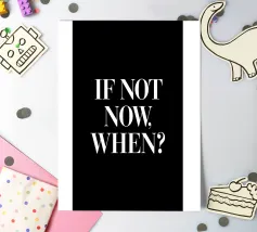 Empower your space with our striking "If Not Now When" art print. This elegant design features sophisticated white serif lettering on a sleek black background, creating a timeless and impactful visual statement. Perfect for go-getters, dreamers, and anyone needing a gentle nudge towards action, this versatile artwork adds a touch of motivation to any room. The clean, classic typography ensures the message stands out, serving as a constant reminder to seize opportunities and embrace the present moment. Let this eye-catching piece inspire you to take that first step towards your goals