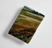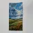 This painting is a vibrant, textural journey through a rolling landscape under a dynamic sky. The artist uses the impasto technique, applying thick layers of paint to create a rich, three-dimensional surface. The foreground features expressive strokes of green, gold, and brown, depicting sun-drenched fields and lush grass. A line of dark green trees forms a tranquil horizon, while the sky above commands attention with its dramatic play of light and shadow. The heavy, layered clouds in shades of deep blue, gray, and brilliant white create a sense of movement and depth, suggesting a passing stor