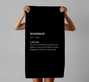Embrace your digital comfort zone with our witty "Internet" typography art print. This clever design presents a humorous dictionary-style definition in crisp white serif text on a sleek black background, perfectly capturing the cozy reality of modern online life. Ideal for tech enthusiasts, homebodies, and anyone who appreciates a good Netflix binge, it adds a touch of relatable humor to any space. The stark contrast and formal typography style create a visually striking piece that's both amusing and stylish. Available on various products, this versatile design makes a perfect gift for the int