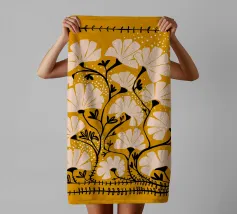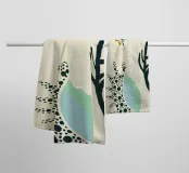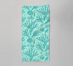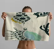 This artistic coastal design features abstract shell, coral, and sea plant shapes arranged in a balanced, modern composition. Delicate dot patterns add texture and depth, while organic silhouettes create a calm, natural rhythm. The soft color palette combines cream, muted green, deep blue, black, and subtle yellow accents for a timeless maritime aesthetic. A stylish, nature-inspired illustration with a contemporary coastal feel, ideal for lovers of minimalist, elegant art with marine motifs.
