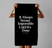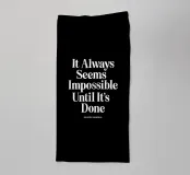 Elevate your space with this striking typography art print featuring Nelson Mandela's iconic words. The timeless message "It Always Seems Impossible Until It's Done" is rendered in crisp white retro serif lettering against a deep black background, creating a bold contrast that demands attention. This minimalist design offers a powerful reminder of perseverance and achievement, perfect for home offices, living rooms, or as a thoughtful gift. The classic typography and inspirational message make this print a versatile addition to any decor style, from modern to traditional.