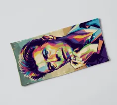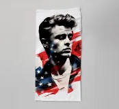 A portrait like a manifesto: the features are reminiscent of James Dean - a symbol of youthful rebellion, vulnerable strength and the American dream in the twilight. The superimposition of stars and stripes turns the picture into a reflection on identity, freedom and projection. Stylistically somewhere between pop art, film poster and patriotic pathos, the work seems like an echo of the era in which coolness and melancholy became the attitude of an entire generation. Ideal for rooms that are intended to show icons as a mirror of society.