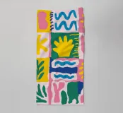 A joyful and colorful grid is filled with a variety of playful patterns and icons, including stylized flowers and abstract shapes, creating a cheerful and decorative design.