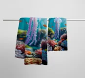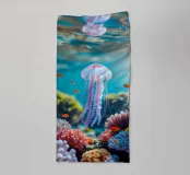 A graceful jellyfish floats gently just below the surface of the water, where sunbeams and reflections combine to form an enchanting dance. The coral gleams in soft colours, and the airy bokeh in the background gives it a dreamy look. A magical moment caught between light and depth. This digital illustration was created in a photo-realistic style, with an eye for light, detail and atmosphere. An ode to life underwater, depicted by Trinkets NL Design Studio and brought to life with the help of AI.