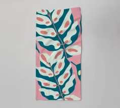 An illustration featuring a leaf pattern with a simple style, using pink, white, and brown colors. This illustration provides a fresh and modern look.