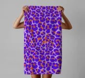 Modern, trendy leopard pattern in strong contrasting colours. Purple and orange.