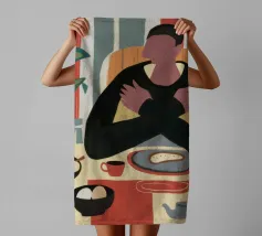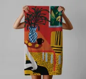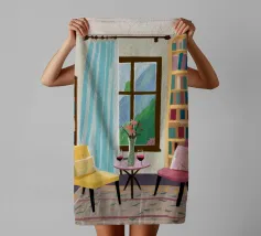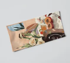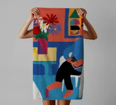 A scene of a person sitting on a leopard print rug, surrounded by plants and books. The composition is a colorful and eclectic celebration of quiet contemplation in a vibrant, modern, and personalized space.