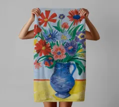 Terry velour with a mix of 60% microfiber and 40% cotton.