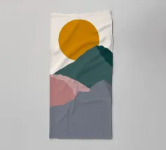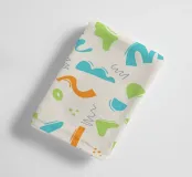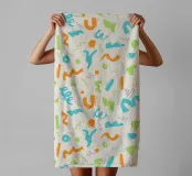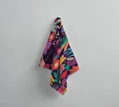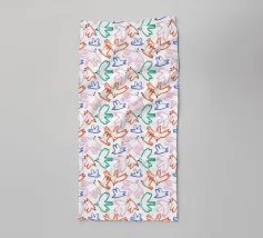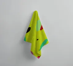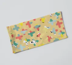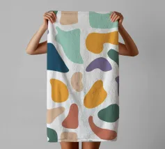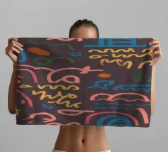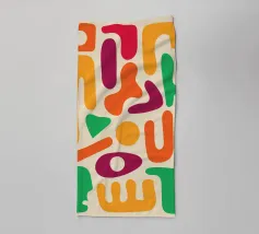 This design presents an abstract composition of flowing lines and shapes in bold colours. The elements are arranged harmoniously and give the pattern a dynamic and playful look.