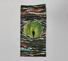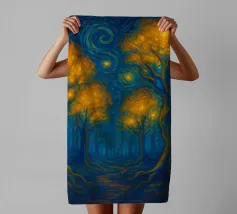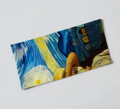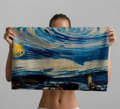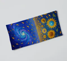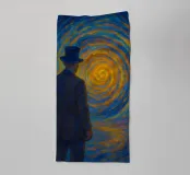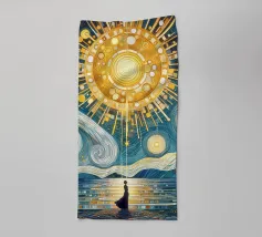 This captivating artwork portrays a solitary figure standing before a radiant swirling vortex, blending deep blues with vibrant golden light. The textured, painterly strokes create a mesmerizing sense of movement and mystery, inviting the viewer into a dreamlike journey. With its atmospheric glow and contemplative mood, this design appeals to fans of surreal landscapes, symbolic art, and emotional storytelling. A striking statement piece that adds depth, intrigue, and color to modern interiors, creative studios, or meditation spaces. Let your wall tell a story of wonder.
