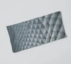 This macro shot shows an electronic component with striking cooling fins that are geometrically precisely aligned and finished in shiny metal. The textured surface reveals a grid pattern that not only serves functional purposes, but is also aesthetically reminiscent of modernist sculptures. The bluish toning emphasises the technical character and lends the picture a futuristic atmosphere. The clear lines and rhythmic repetitions reflect industrial manufacturing precision,