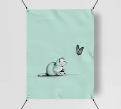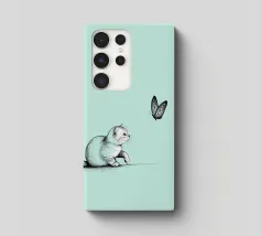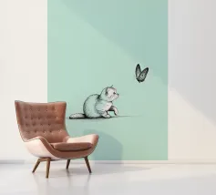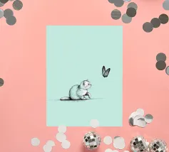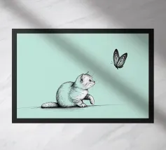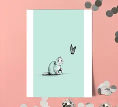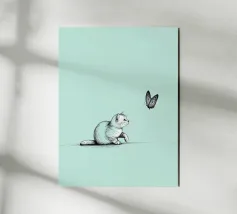 The delicate beauty of nature with this minimalist line drawing of a cat with a butterfly. A modern abstract art piece that symbolizes curiosity, grace, and the connection between animals and nature.