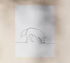 The curiosity and instinct of a dog sniffing with this minimalist line drawing. A modern abstract art piece that symbolizes exploration, awareness, and the keen senses of canines.