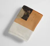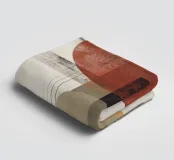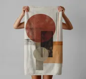 A bold abstract artwork featuring circles, rectangles, and fine lines in rust red, black, beige, and orange. The textured finish gives it a vintage touch, making it ideal for modern, boho, or mid-century interiors.