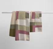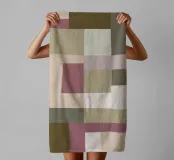 Color blocking abstract art. Organic rectangles with irregular lines in olive, mauve and cream hues form a striking color block artwork for modern interiors.