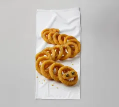 Golden-brown nuggets float against a dark background, showcasing their crispy texture and appetizing appearance. The striking contrast highlights the delightful snack's appeal.