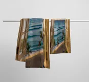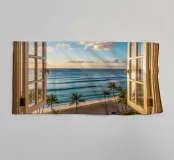 Let the sea breeze in with this enchanting view of a palm-fringed sandy beach at Waikiki Beach. This luminous design captures the perfect moment when the golden sky is reflected on the calm ocean. An invitation to get away from it all, to laze around and enjoy the tropical sunshine. Ideal for recreating a relaxing summer ambience, where every glance evokes holidays and the serenity of an endless horizon.