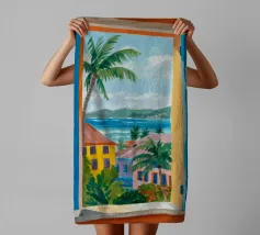 Terry velour with a mix of 60% microfiber and 40% cotton.