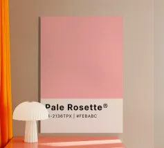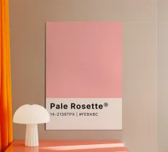 Adorn your space with this serene and chic digital poster, featuring the "Pale Rosette" Pantone color. The upper section showcases a solid block of this delicate, soft pink hue, while the lower part clearly displays "Pale Rosette®" along with its Pantone code 14-2136TPX and hexadecimal value #FEBABC. This print is perfect for adding a subtle touch of color and modern elegance to any interior, appealing to designers and color enthusiasts alike. This high-quality digital poster is provided at an impressive 7000x5000 pixels resolution and 300 dpi, ensuring exceptional clarity and accurate color r