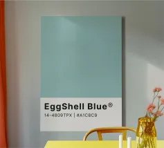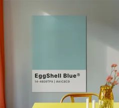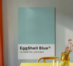 Add a touch of subtle calm to your space with this modern and minimalist digital poster. The artwork features a clean color block design showcasing the official Pantone shade "EggShell Blue." The color's name, code (14-4809TPX), and hex code (#A1C8C9) are printed at the bottom, giving the piece a chic and graphic feel. This poster is a stylish and simple way to introduce a soft, trendy color into a living room, bedroom, or creative studio. This high-quality digital art file, at a stunning 7000x5000 pixels and 300 dpi, ensures a crisp and accurate print for a premium look.