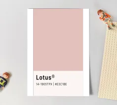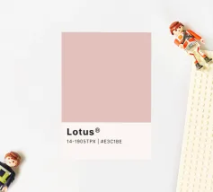 Add a touch of subtle elegance to your space with this modern and minimalist digital poster. The artwork features a clean color block design showcasing the official Pantone shade "Lotus." The color's name, code (14-1905TPX), and hex code (#E3C1BE) are printed at the bottom, giving the piece a chic and graphic feel. This poster is a stylish and simple way to introduce a soft, trendy color into a living room, bedroom, or creative studio. This high-quality digital art file, at a stunning 7000x5000 pixels and 300 dpi, ensures a crisp and accurate print for a premium look.